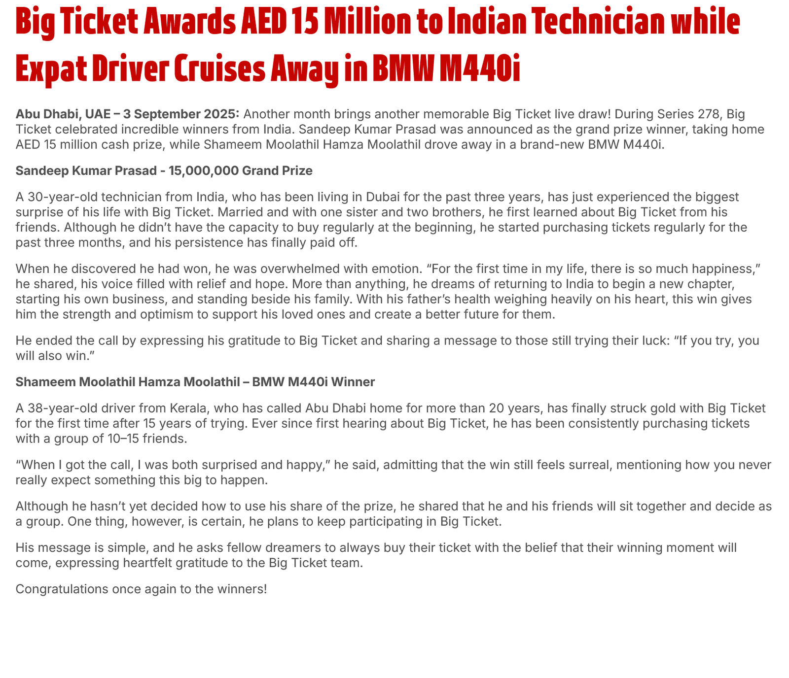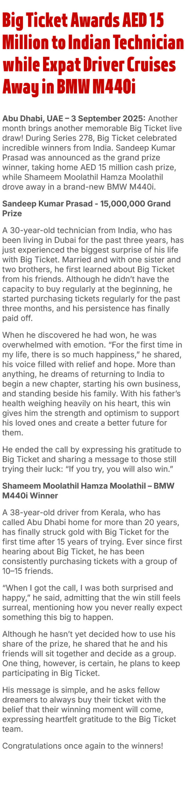 Home Page | Newsroom | Big Ticket Awards AED 15 Million to Indian Technician while Expat Driver Cruises Away in BMW M440i