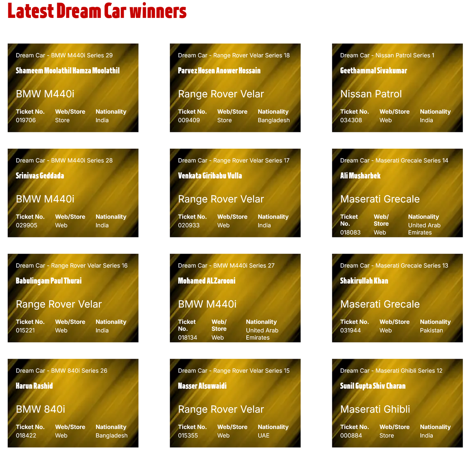 monthly winners